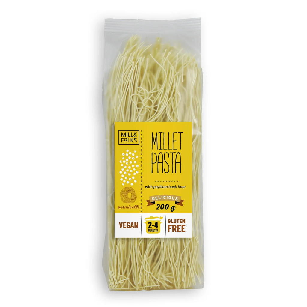 Die Suppennudeln von Mill &Folks werden nach einem hochwertigen Rezept hergestellt. Es ist sehr angenehm, da es ähnlich wie traditionelle Pasta schmeckt. Seine angenehme gelbe Farbe entsteht durch die Zugabe eines Hauches Kurkuma, das auch nach dem Kochen seine Konsistenz behält.