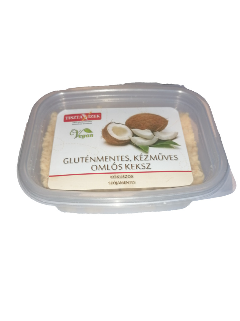 Zutaten:Hirsemehl, Kokosöl, Süßungsmittel (Erythrit), getrocknete Kokosraspeln 10,3 %, Tapiokamehl, Wasser.